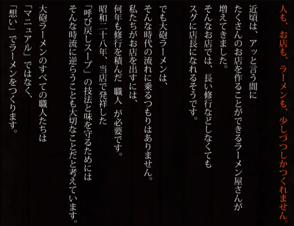 「ラーメンへの想い」を見ながら、待ちます。